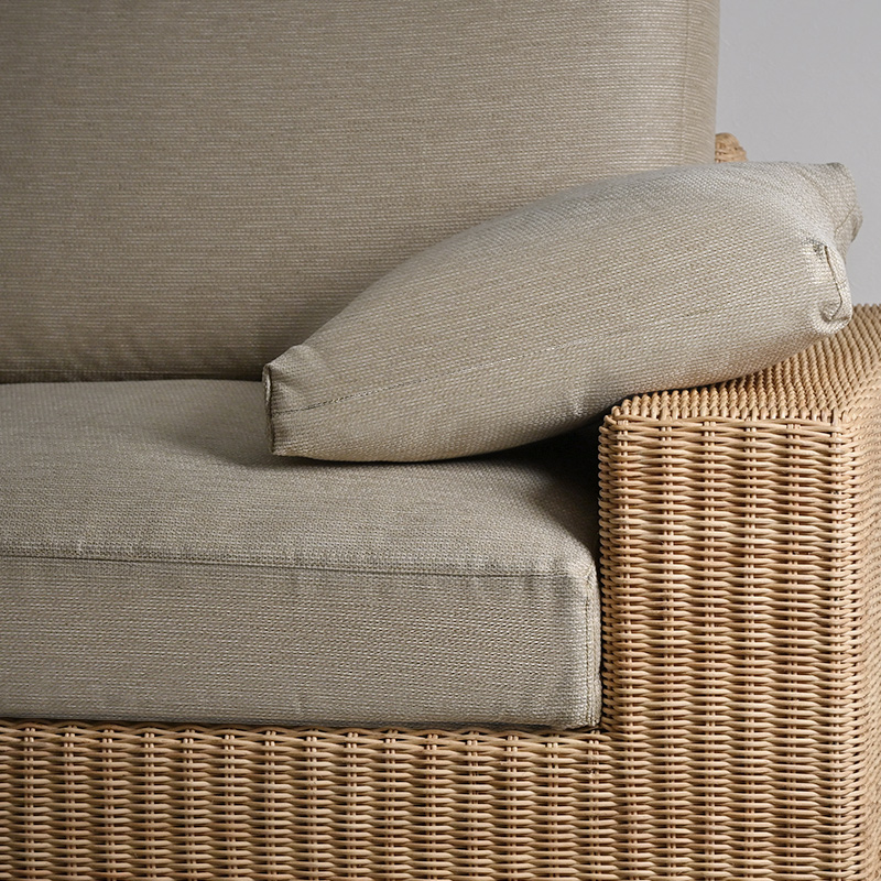 素材 | フレーム : 天然木、合板、 編み : ラタン(籐)、 クッション |