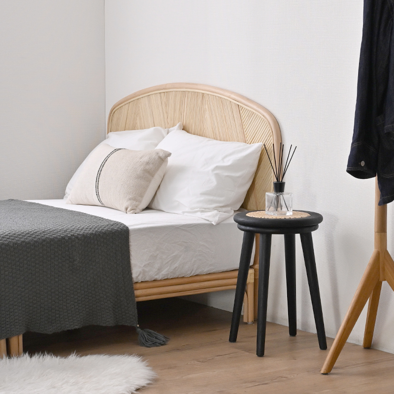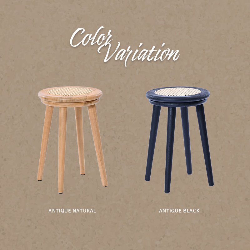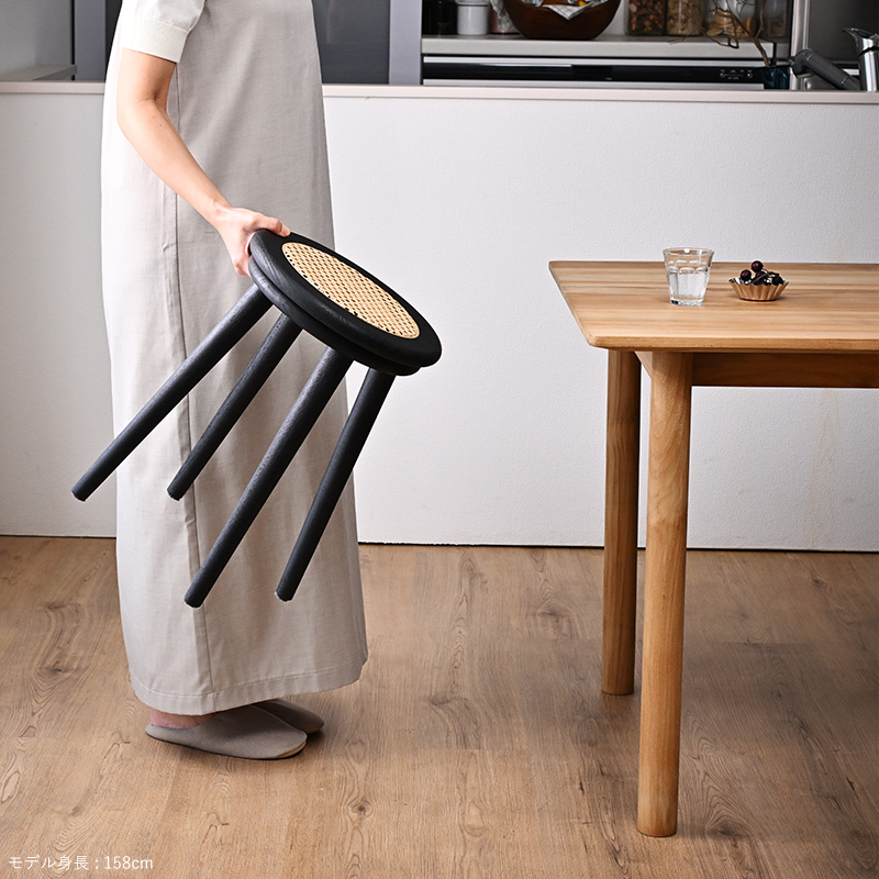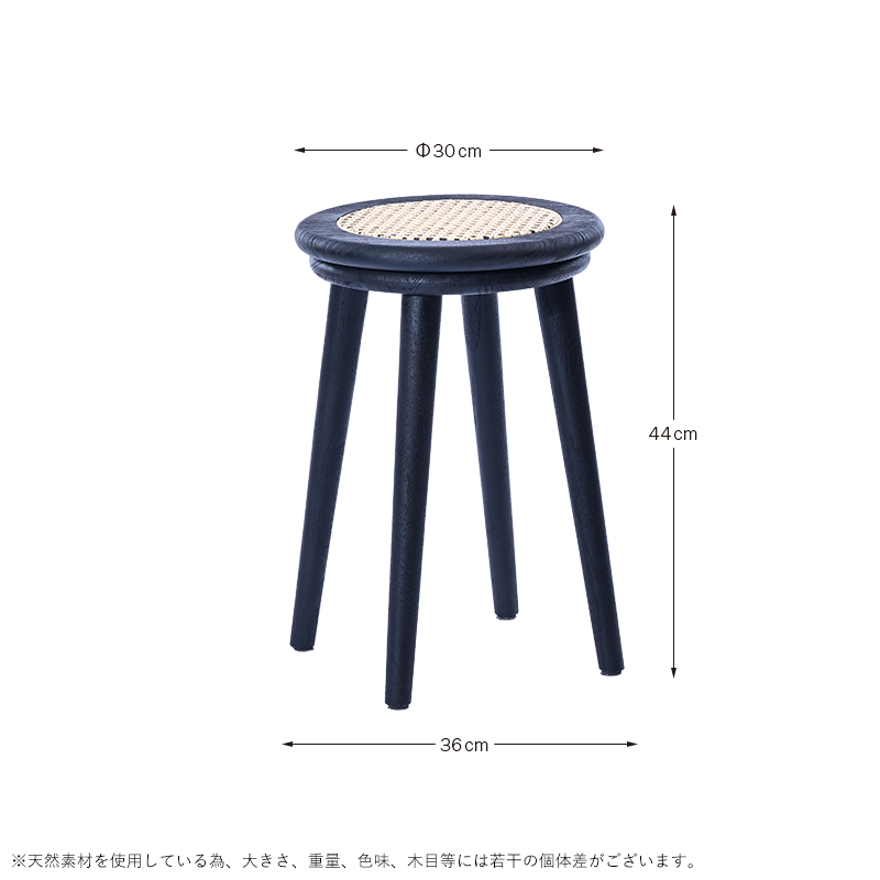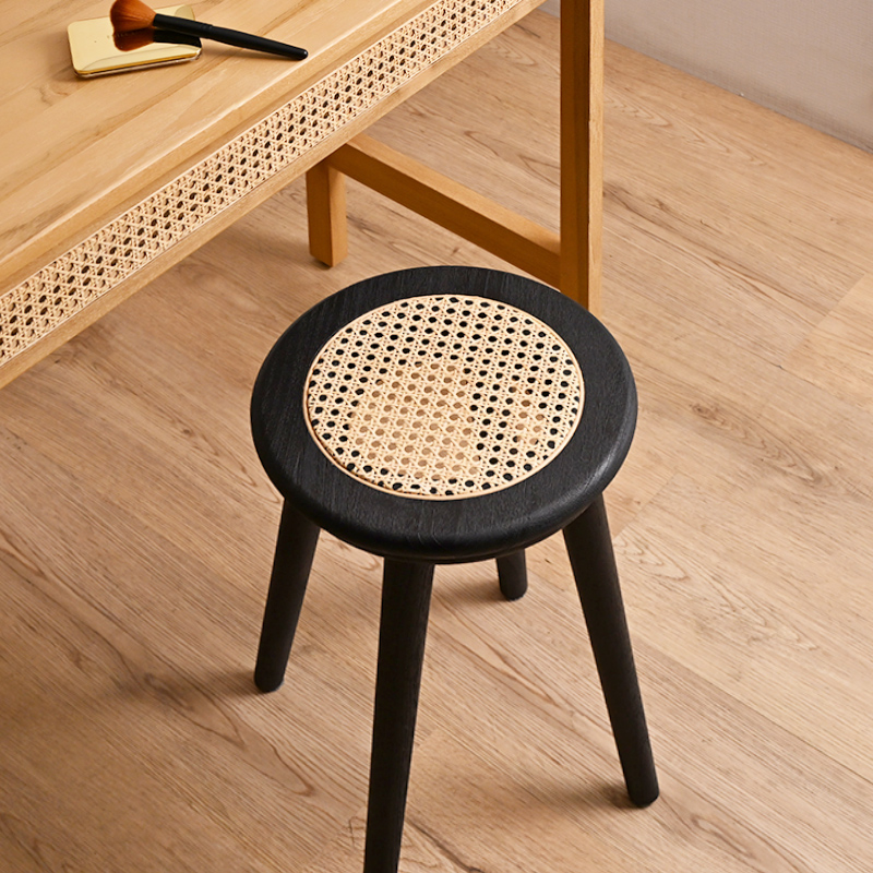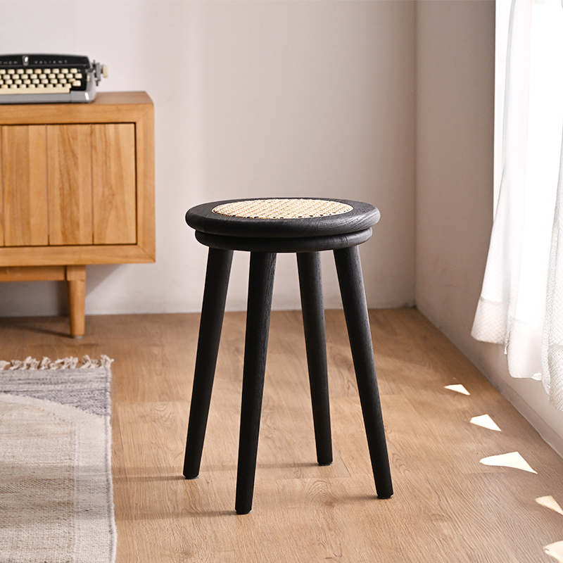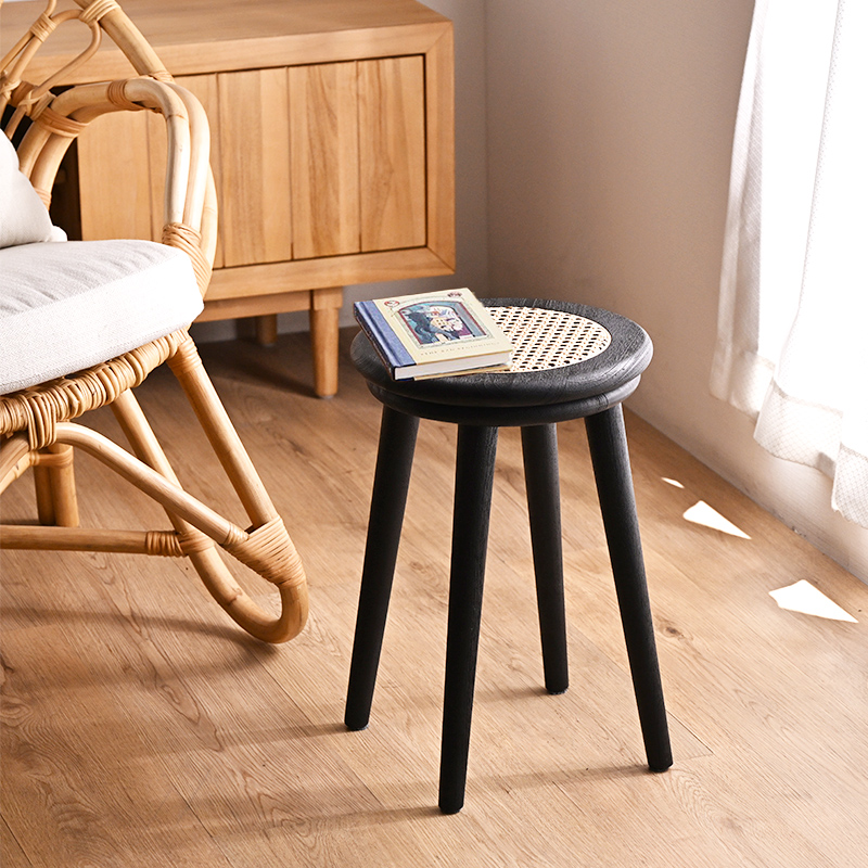 シャープな印象で重厚感のある黒の木肌と、ナチュラルカラーのラタンとのコントラストがおしゃれなスツール。