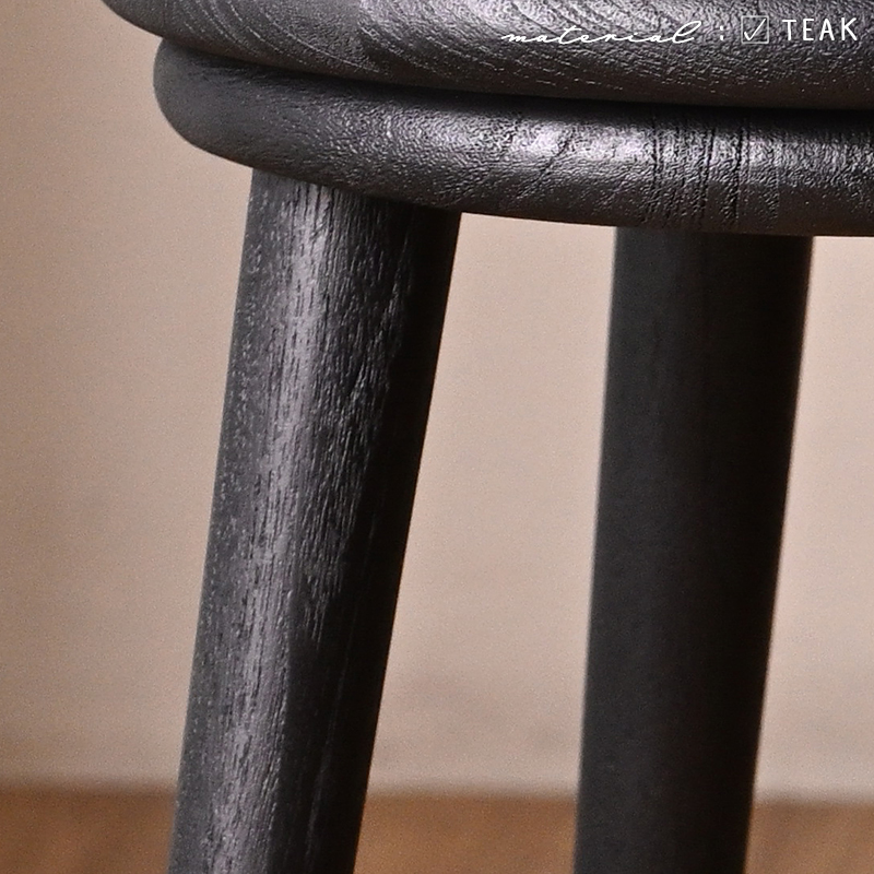 高級素材として知られるチーク材をフレームに使用したスツール。