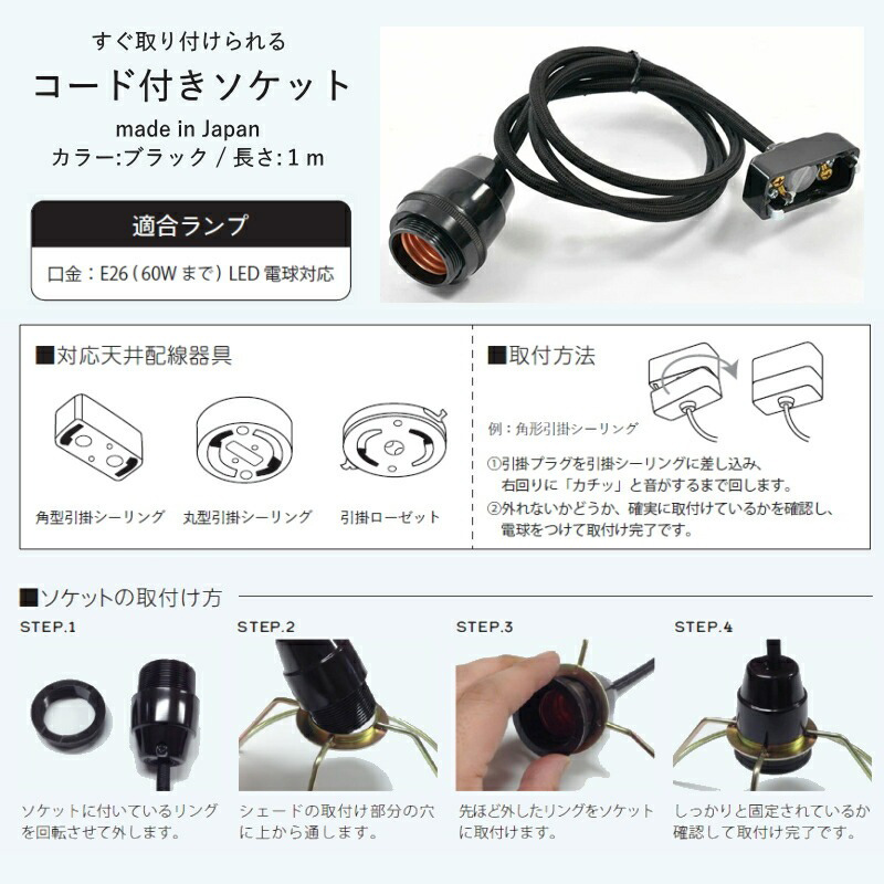 ※こちらの商品はコードのみの販売です(ランプシェードや電球は付属しておりません)。